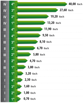 • 32-stupanjski sinkronizirani mjenjač (16 stupnjeva naprijed + 16 unatrag) osigurava da je u svakom trenutku odabran najprikladniji stupanj za obavljanje posla i iskorištavanje snage motora.